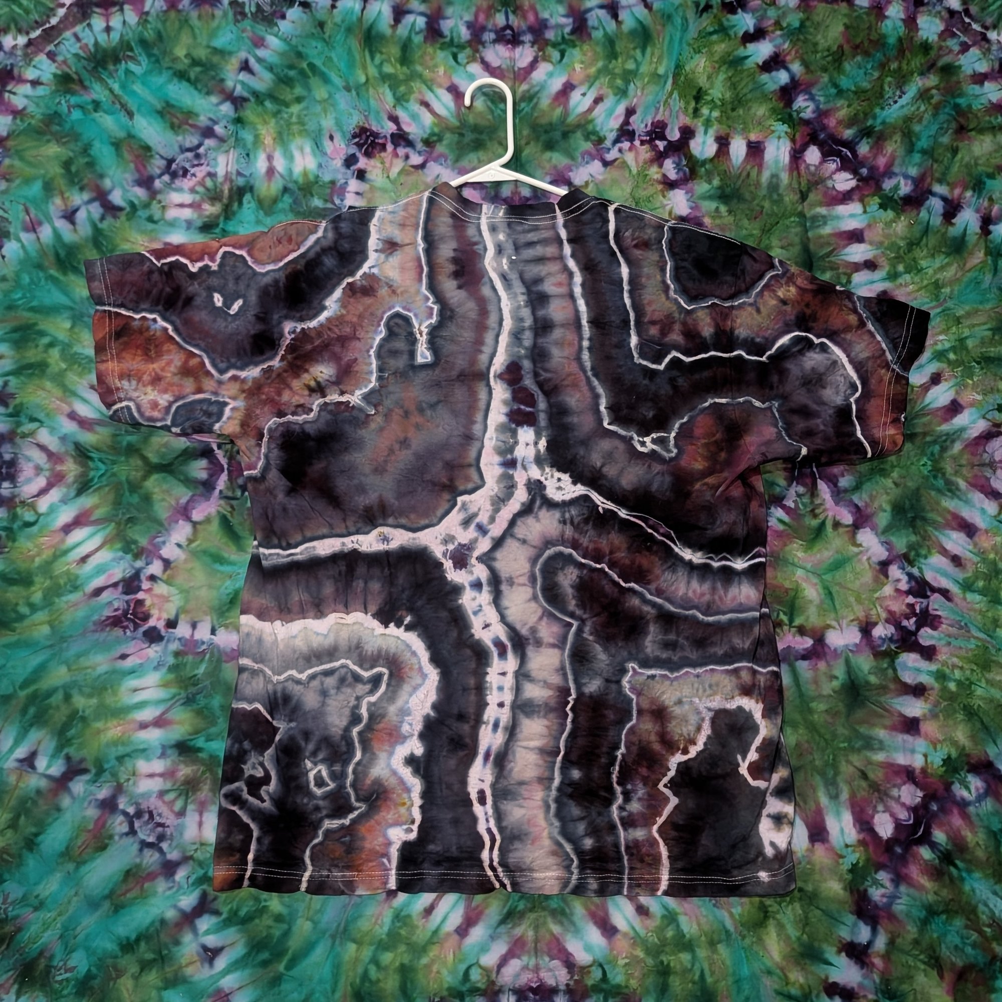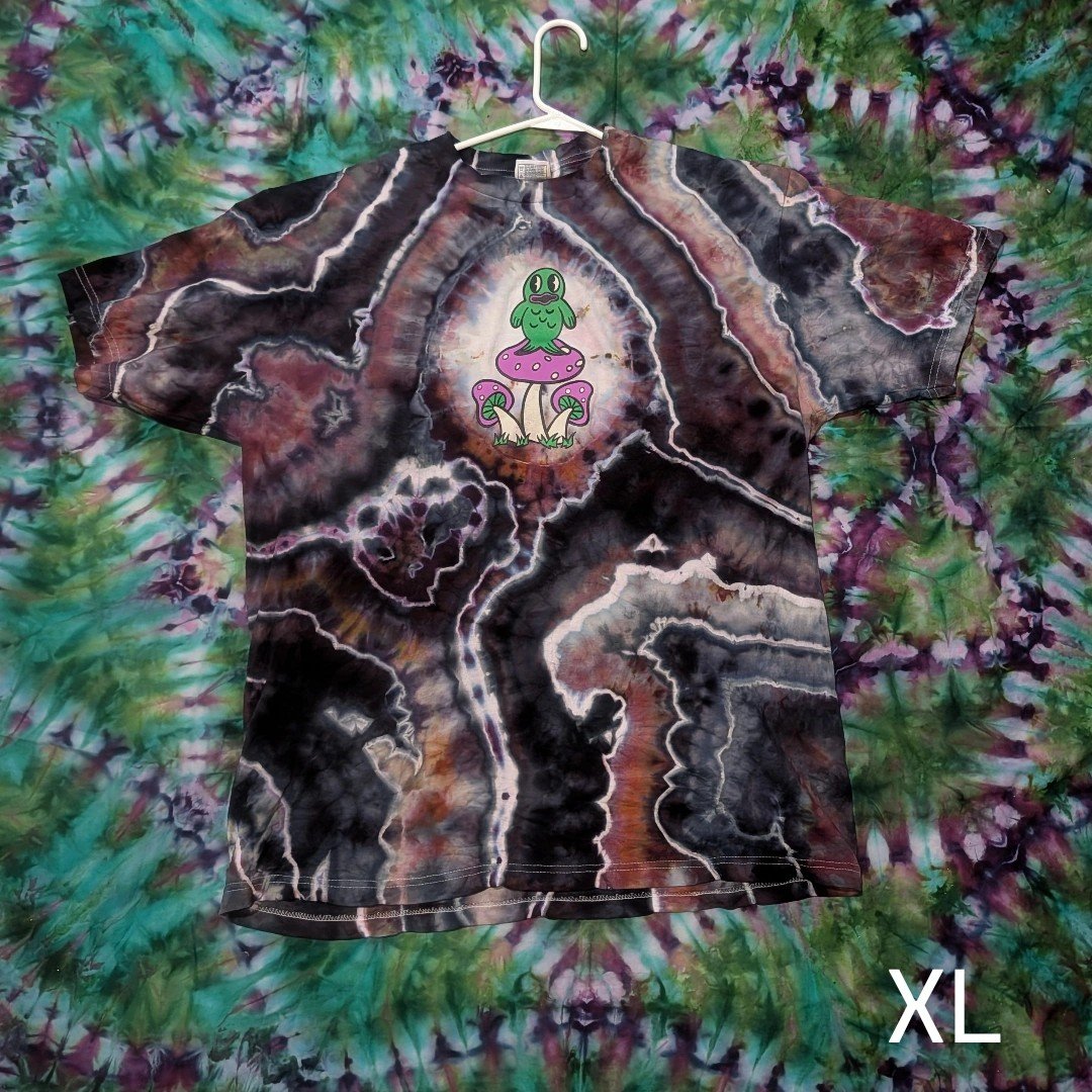 This is a screen printed hand-dyed XL shaka activewear shirt.