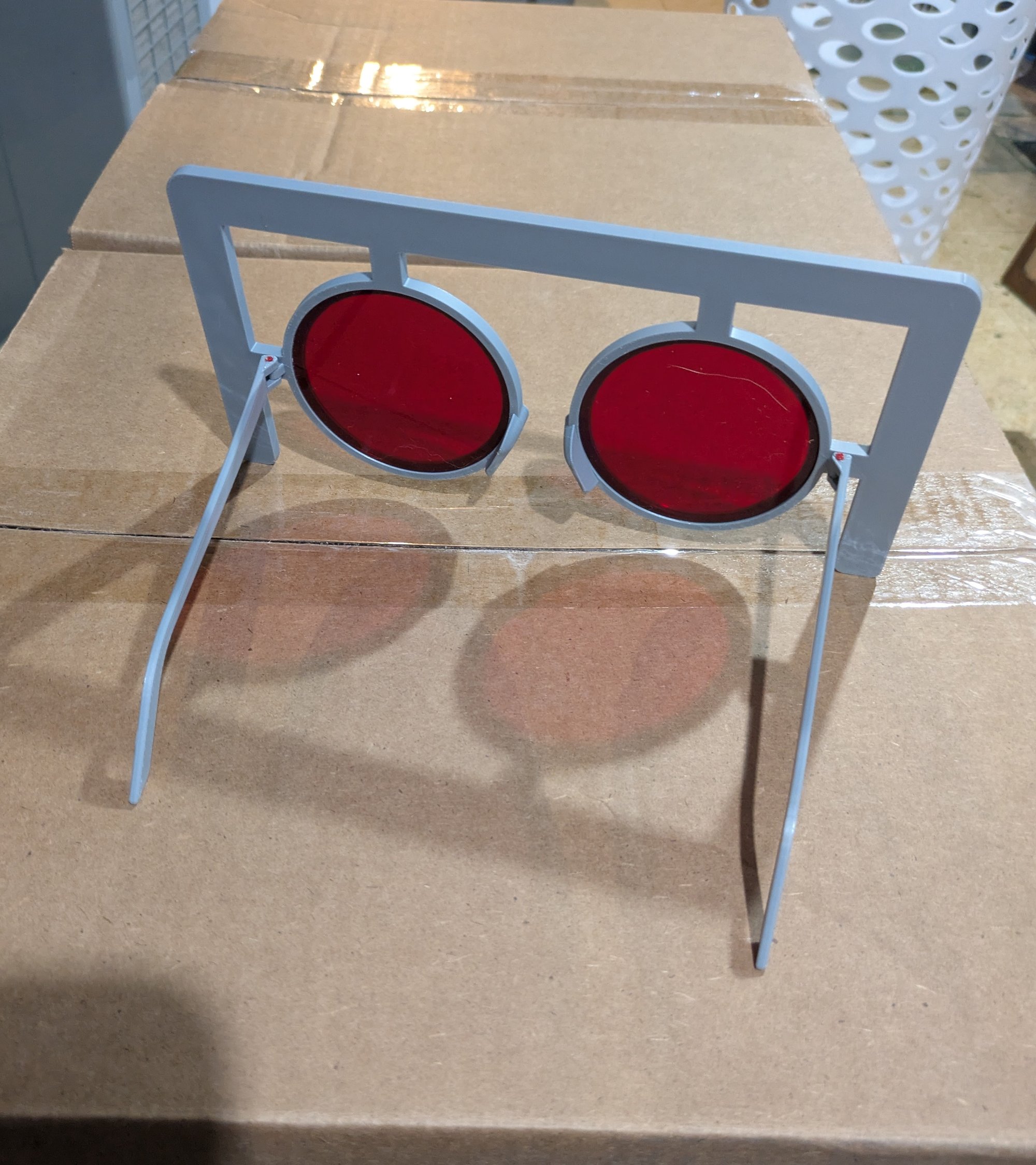 These are massive 9.5x4.75 in party sized silver cord glasses. These are 3D printed with custom acrylic lenses. Each pair comes with a sunglasses band to keep them on your head better well moshing or crowd surfing.